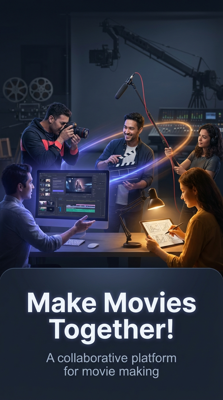 One person starts a story or idea. Others contribute scenes, visuals, performances, or sound — using AI tools — and together, a film takes shape. Instead of creating alone, contributors build on each other’s work — scene by scene.